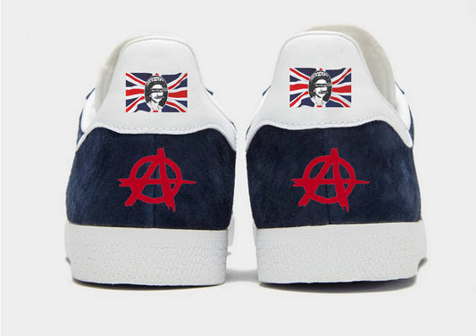 Limited edition Sex Pistois inspired custom Adidas Gazelle Dark blue trainers / sneakers