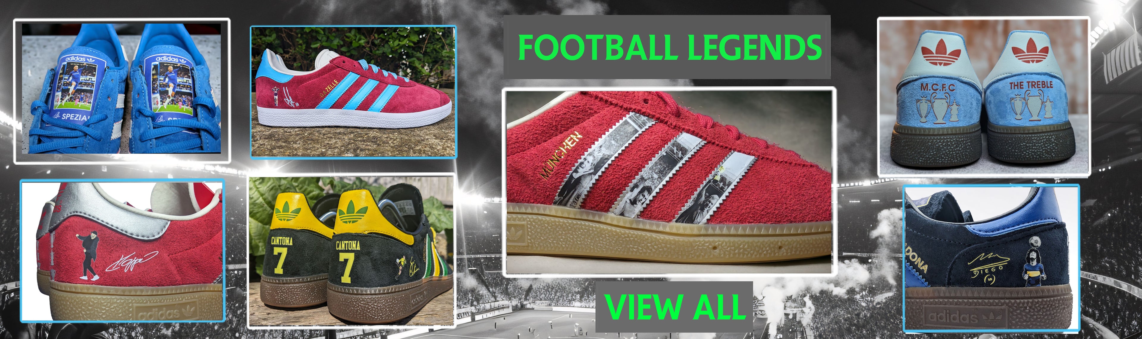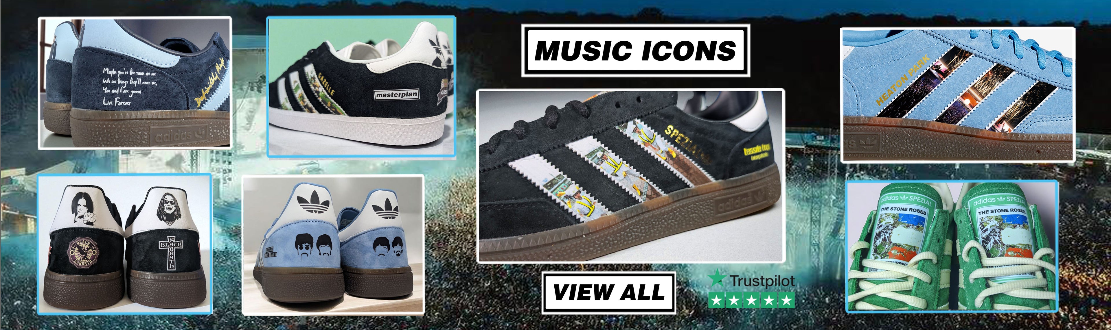 All of our designs use Adidas originals such as Gazelles, Sambas, Handball Spezials, Hamburg and Muchen, but we can customise other shoes. Get in touch to discuss your custom style ideas.