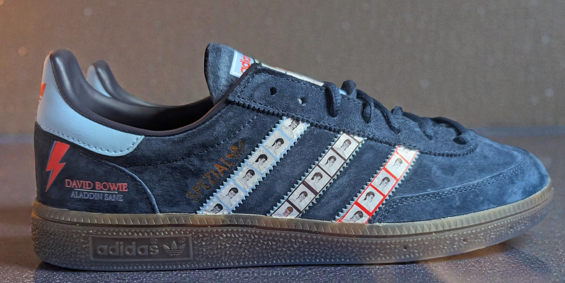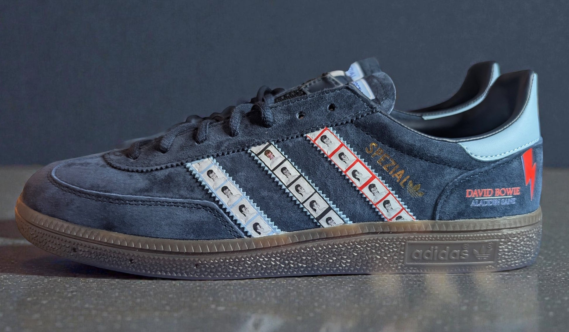 Limited edition David Bowie Aladdin Sane Navy blue suede Adidas Handball Spezial trainers / sneakers