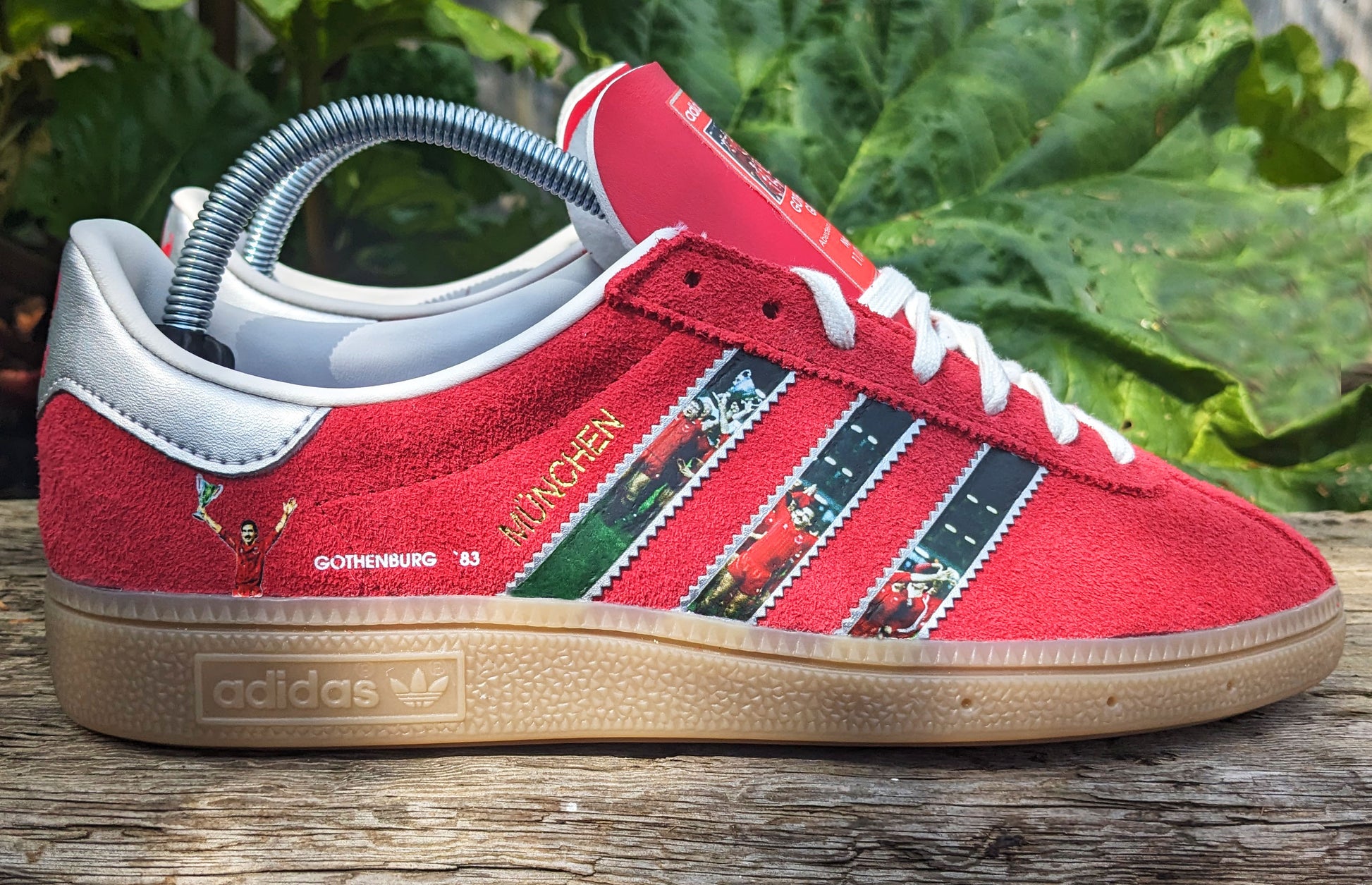 Limited edition Aberdeen `83 cup winners cup Adidas Munchen red custom trainers / sneakers