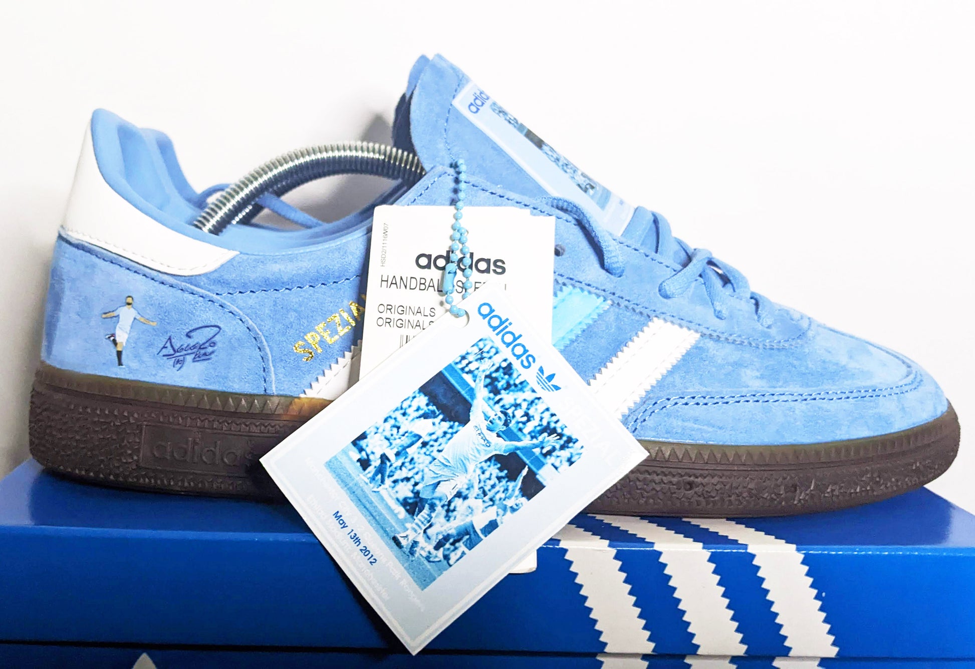 Limited edition Manchester City Sergio Aguero inspired Blue /White/ Adidas Handball Spezial trainers / sneakers