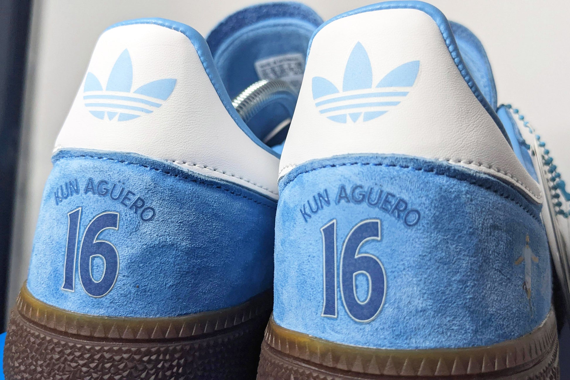 Limited edition Manchester City Sergio Aguero inspired Blue /White/ Adidas Handball Spezial trainers / sneakers.