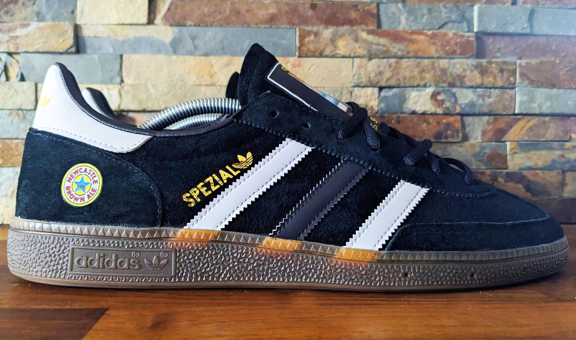 Limited edition retro Newcastle Tino Asprilia inspired Black /White/ Adidas custom Handball Spezial trainers / sneakers