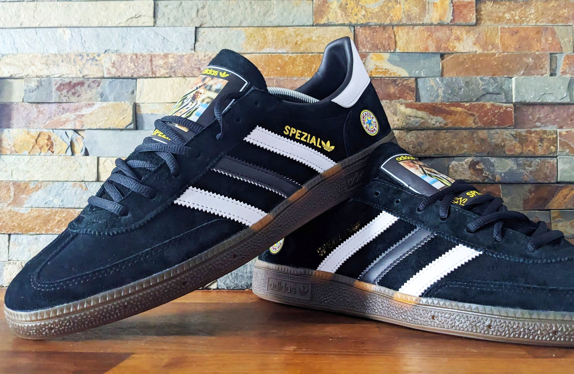 Limited edition retro Newcastle Tino Asprilia inspired Black /White/ Adidas custom Handball Spezial trainers / sneakers.