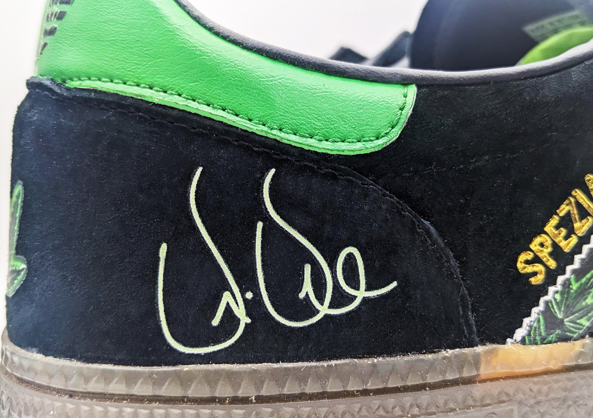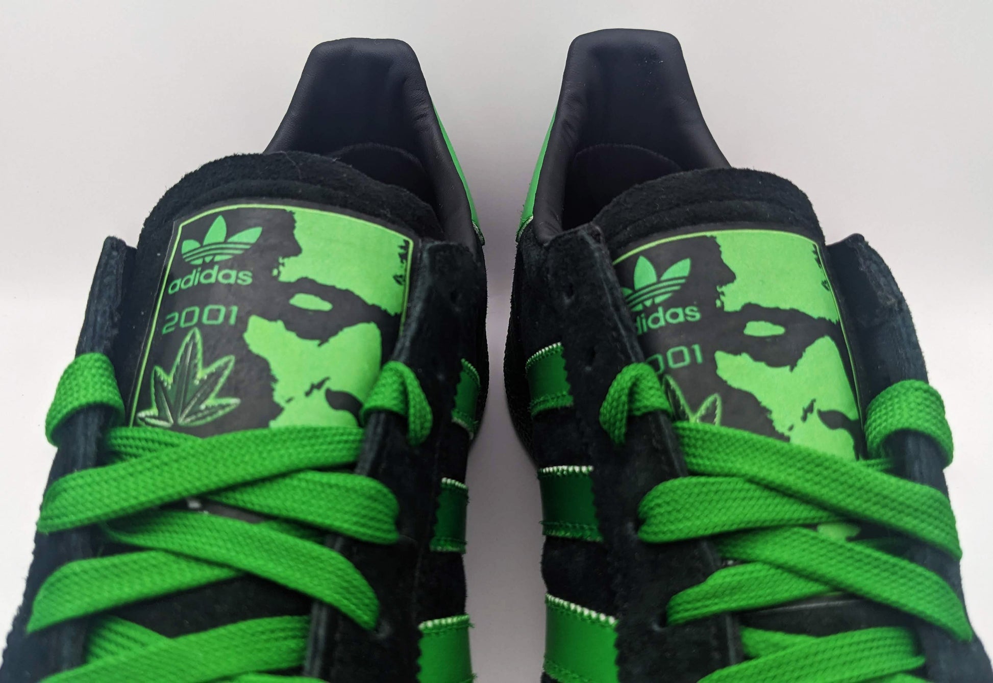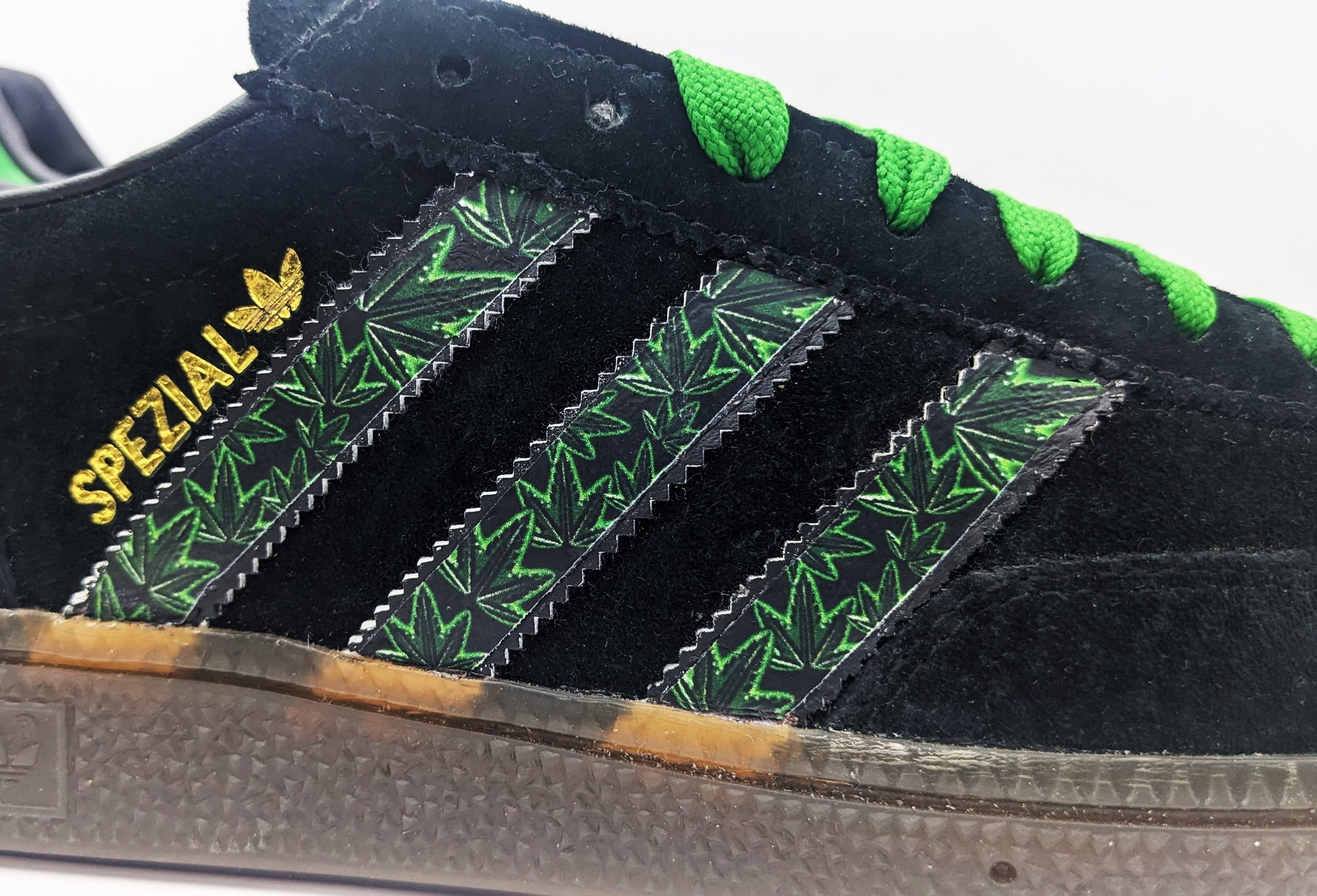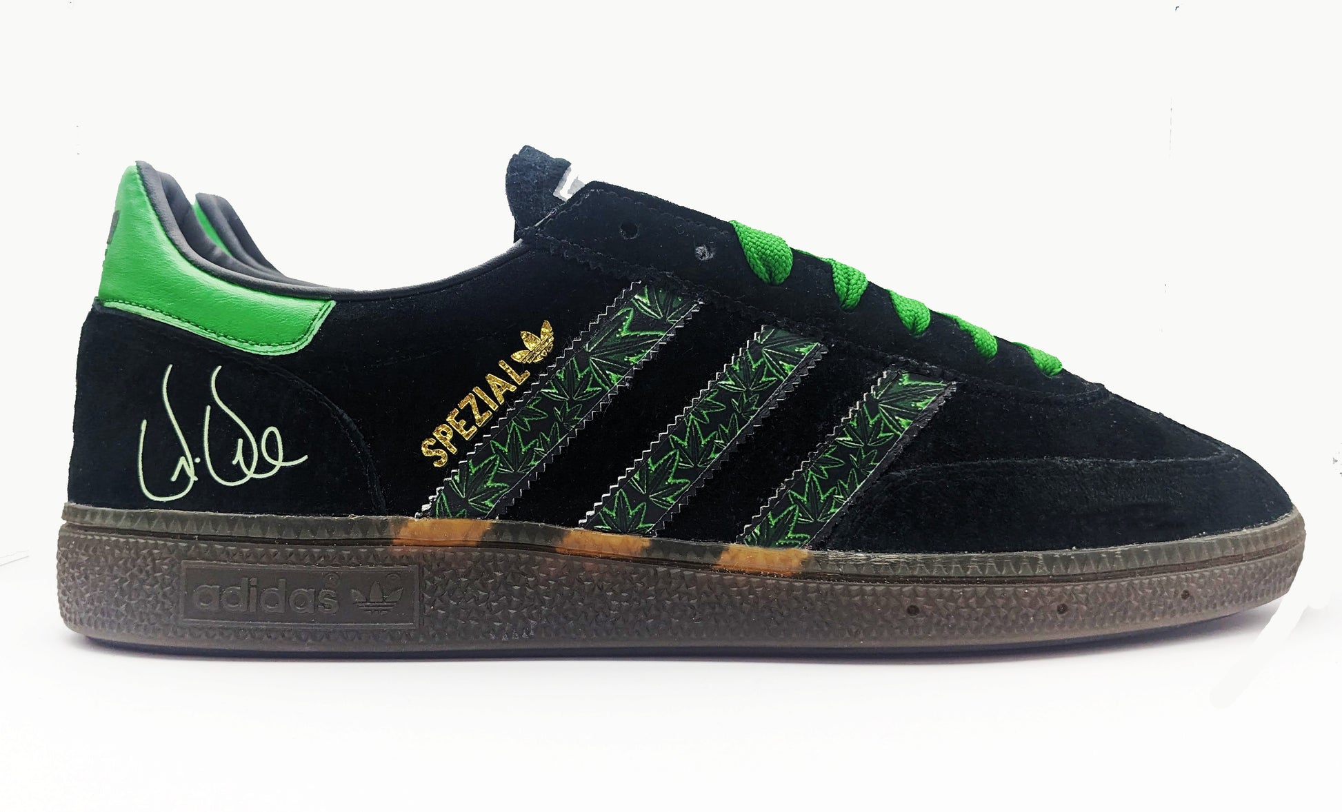 Limited edition Dr Dre Chronic 2001 black / green Adidas custom Handball Spezial trainers / sneakers.