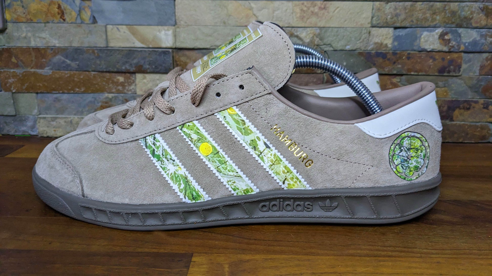 Custom made with 100% authentic Adidas Hamburg trainers purchased from authorized Adidas dealer.