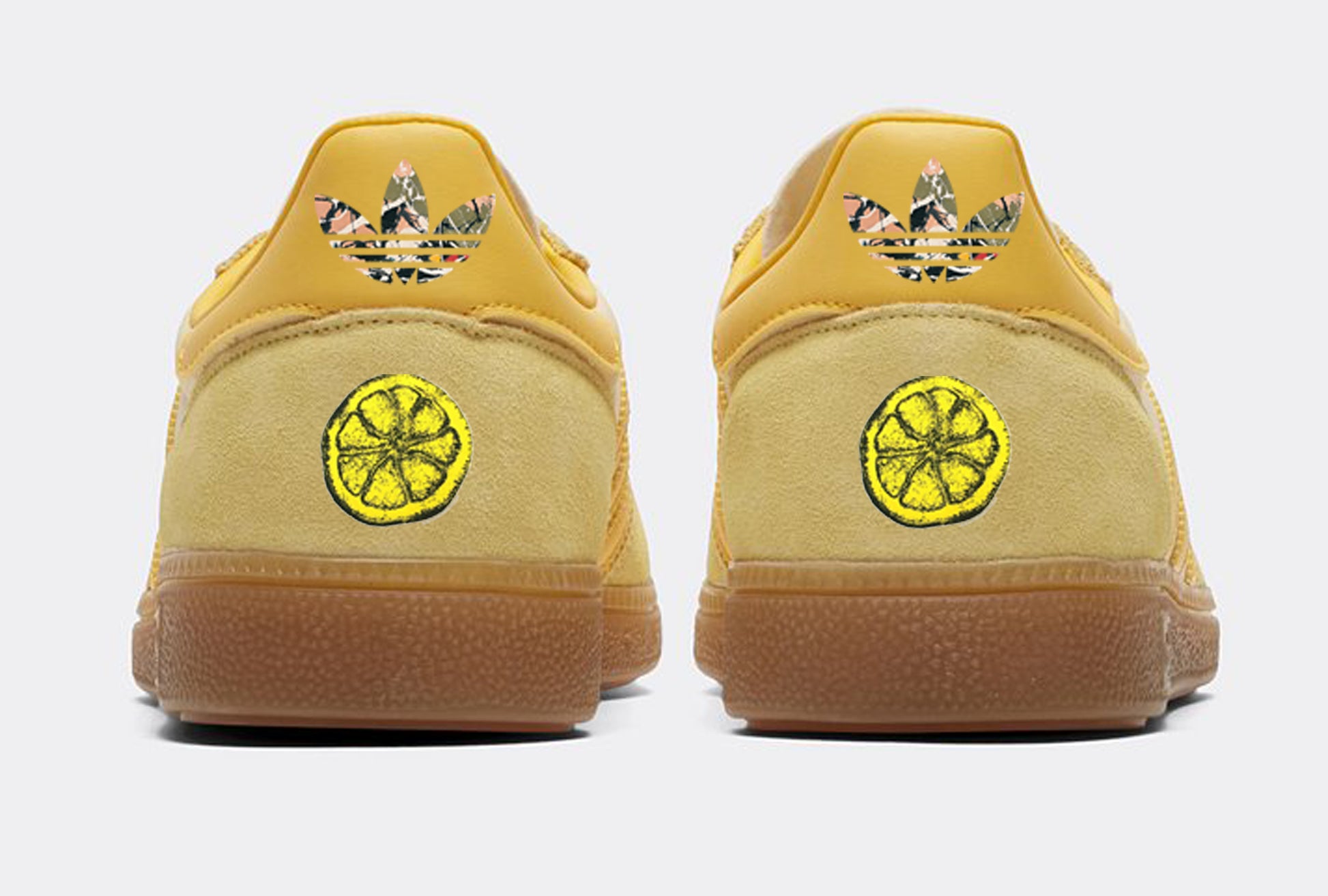 Heels feature Custom single artwork adidas logo and lemon logo.