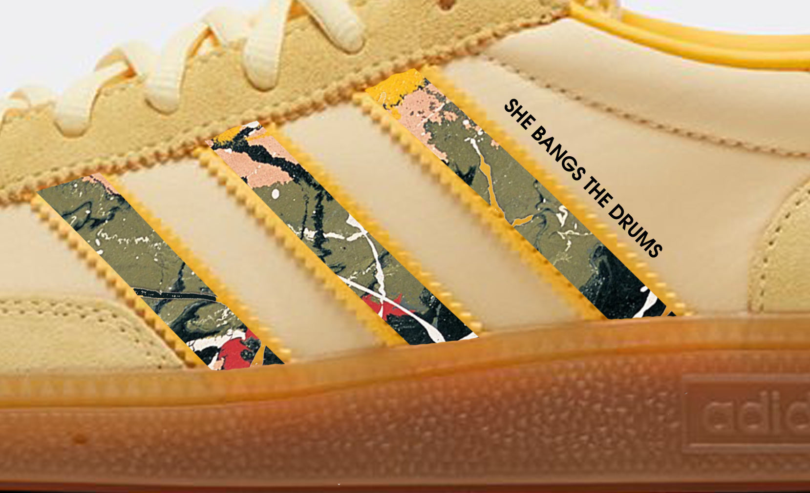 Limited edition The Stone Roses She bangs the drums custom adidas original yellow Handball Spezial trainers / sneakers.