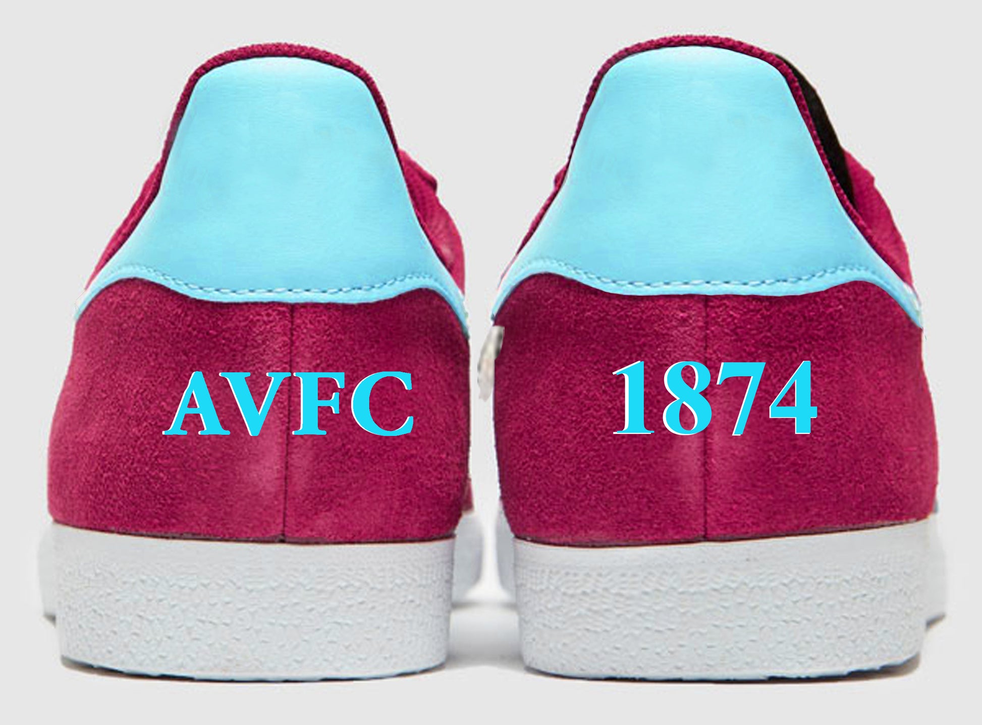 Limited edition Aston Villa Claret / light blue Adidas custom Gazelle trainers / sneakers