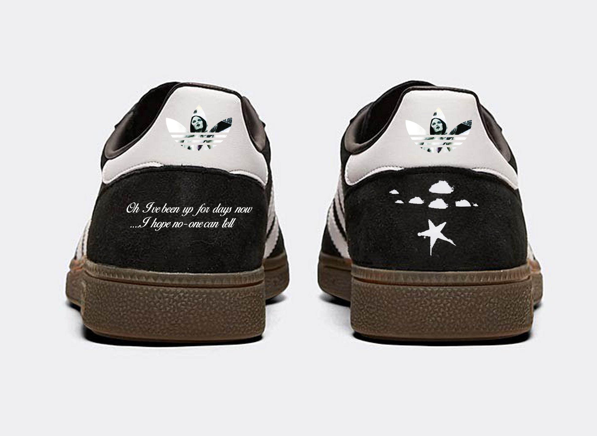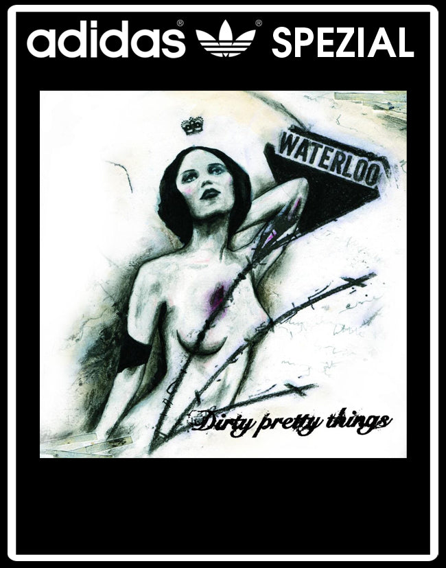Limited edition Dirty Pretty Things Waterloo to anywhere inspired black / white Adidas custom Handball Spezial trainers / sneakers