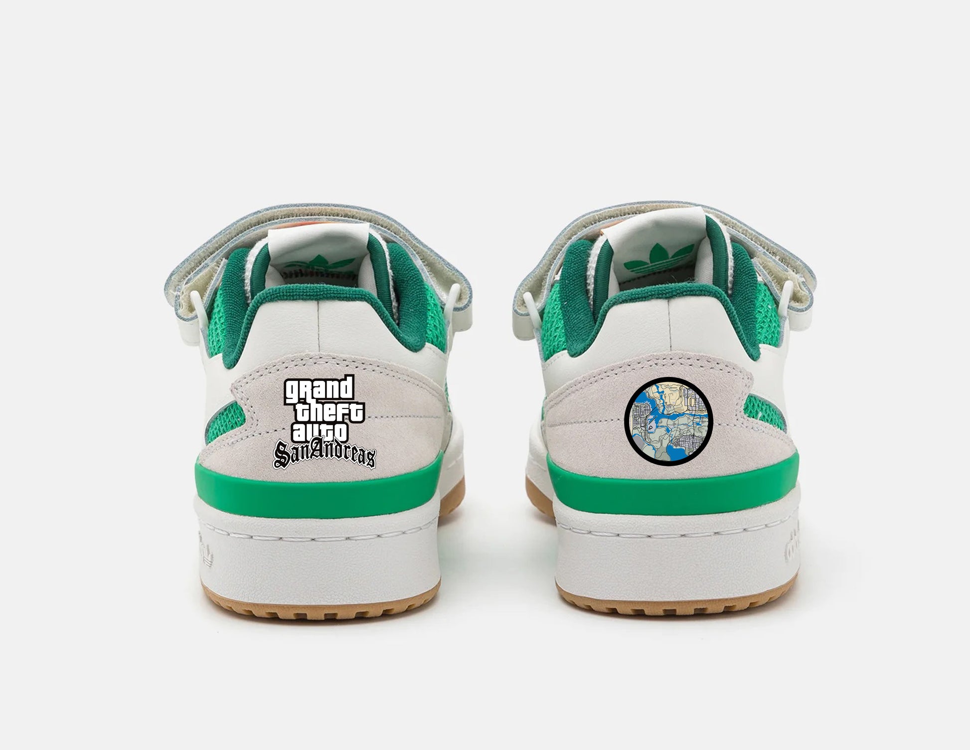 Limited edition GTA San Andreas Green / White Adidas custom Rivalry low trainers / sneakers