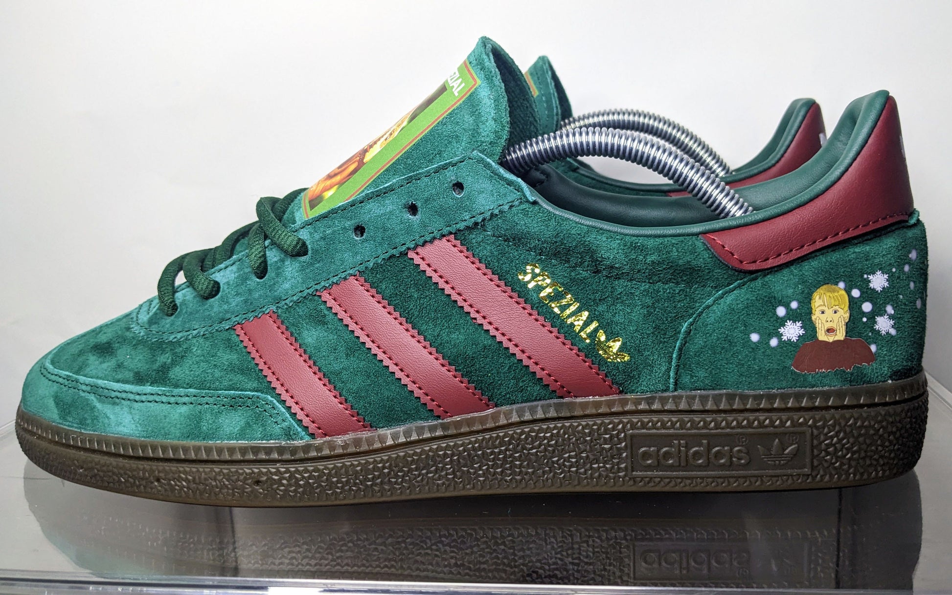 Limited edition Home Alone Christmas movie green / red Adidas Handball Spezial trainers / sneakers