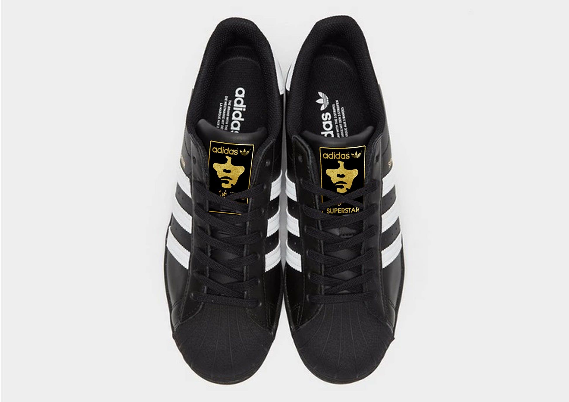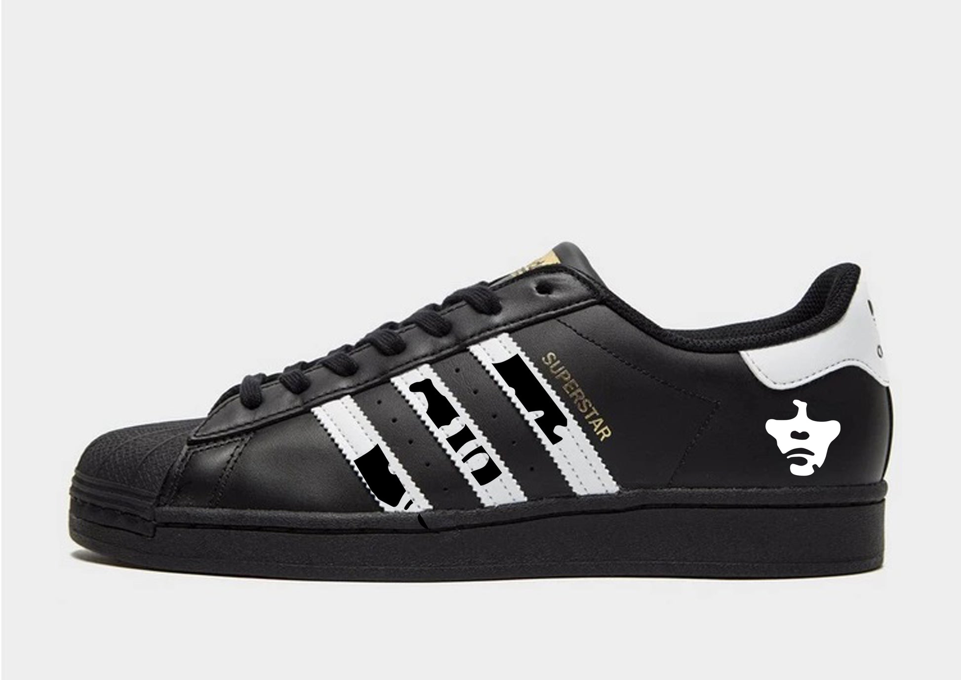 Limited edition Ian Brown Monkey black / white Adidas custom Superstar trainers / sneakers