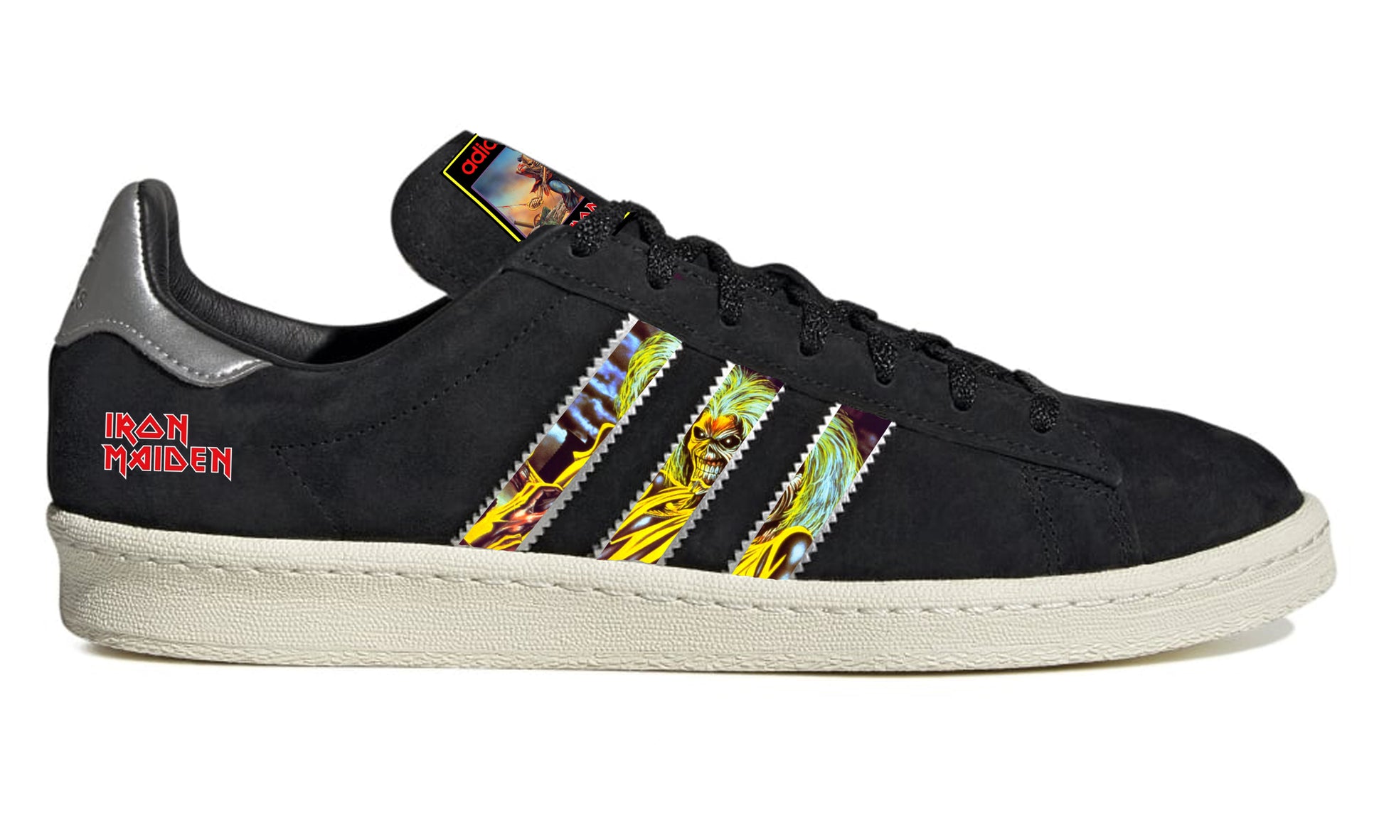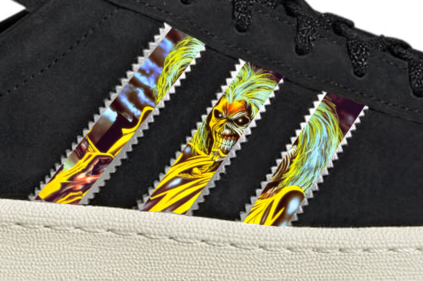 Limited edition Iron Maiden "Eddie" black / silver Adidas custom Campus trainers / sneakers