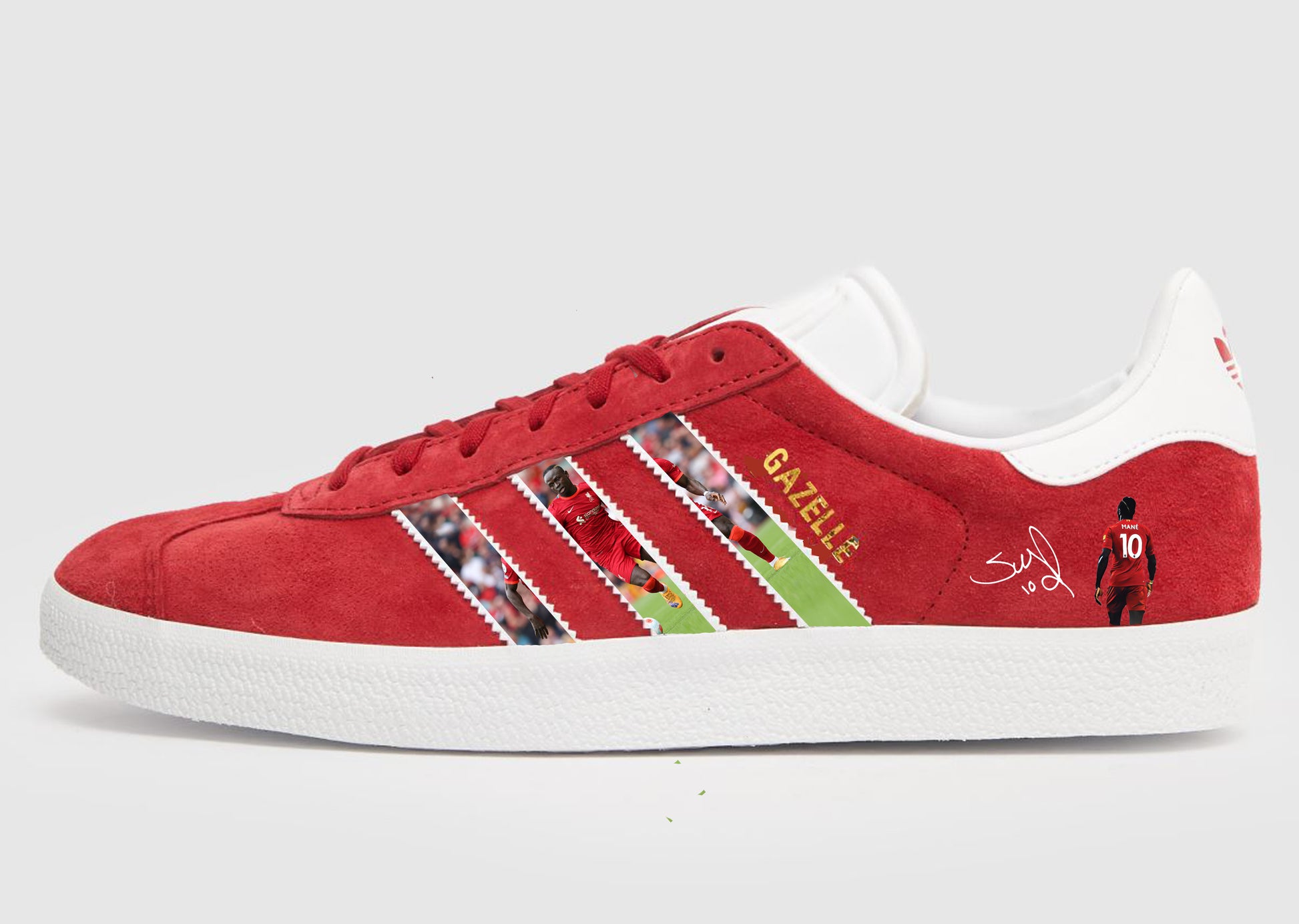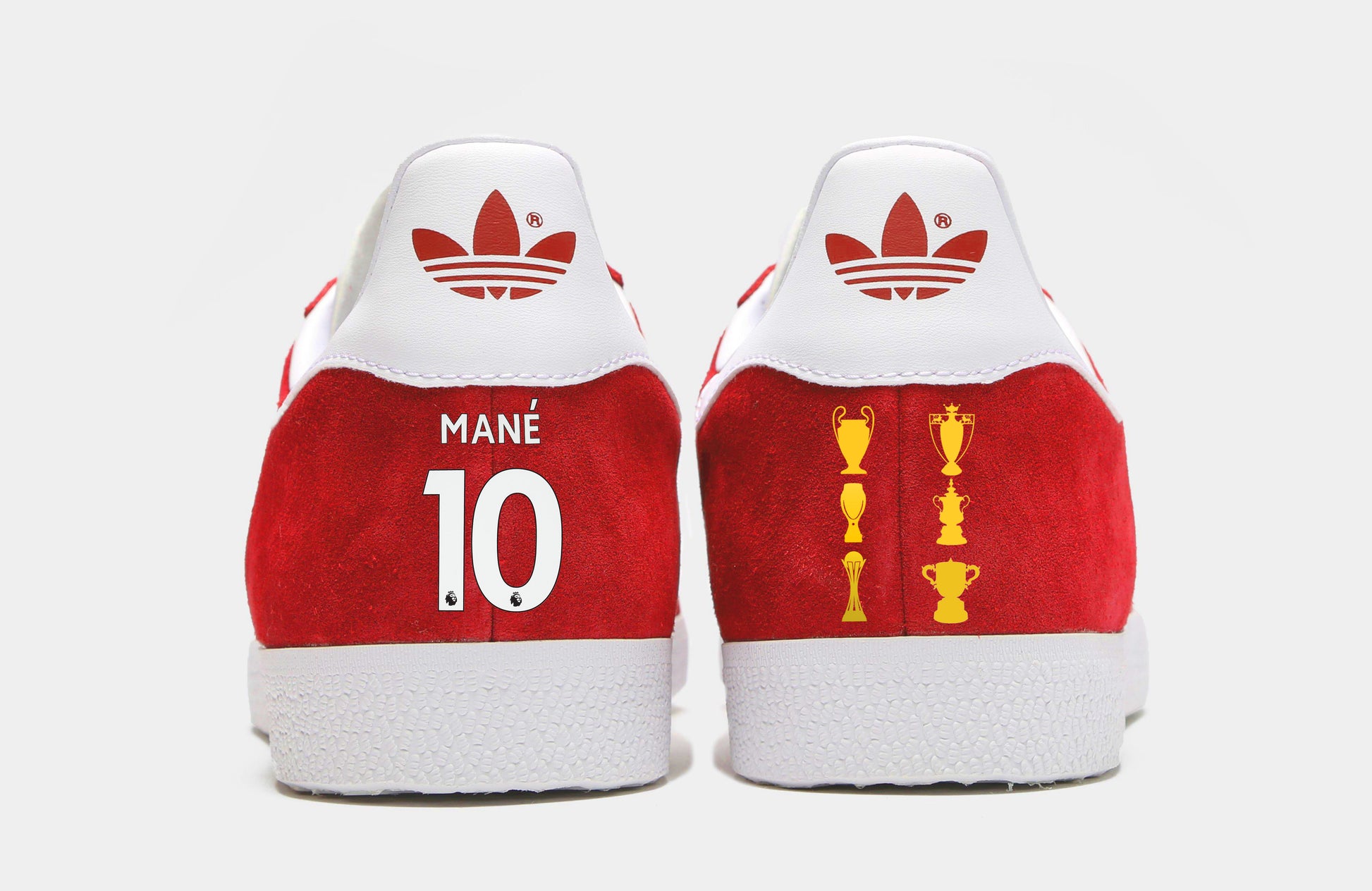 Limited edition Liverpool FC Sadio Mane inspired red / white Adidas custom Gazelle trainers / sneakers