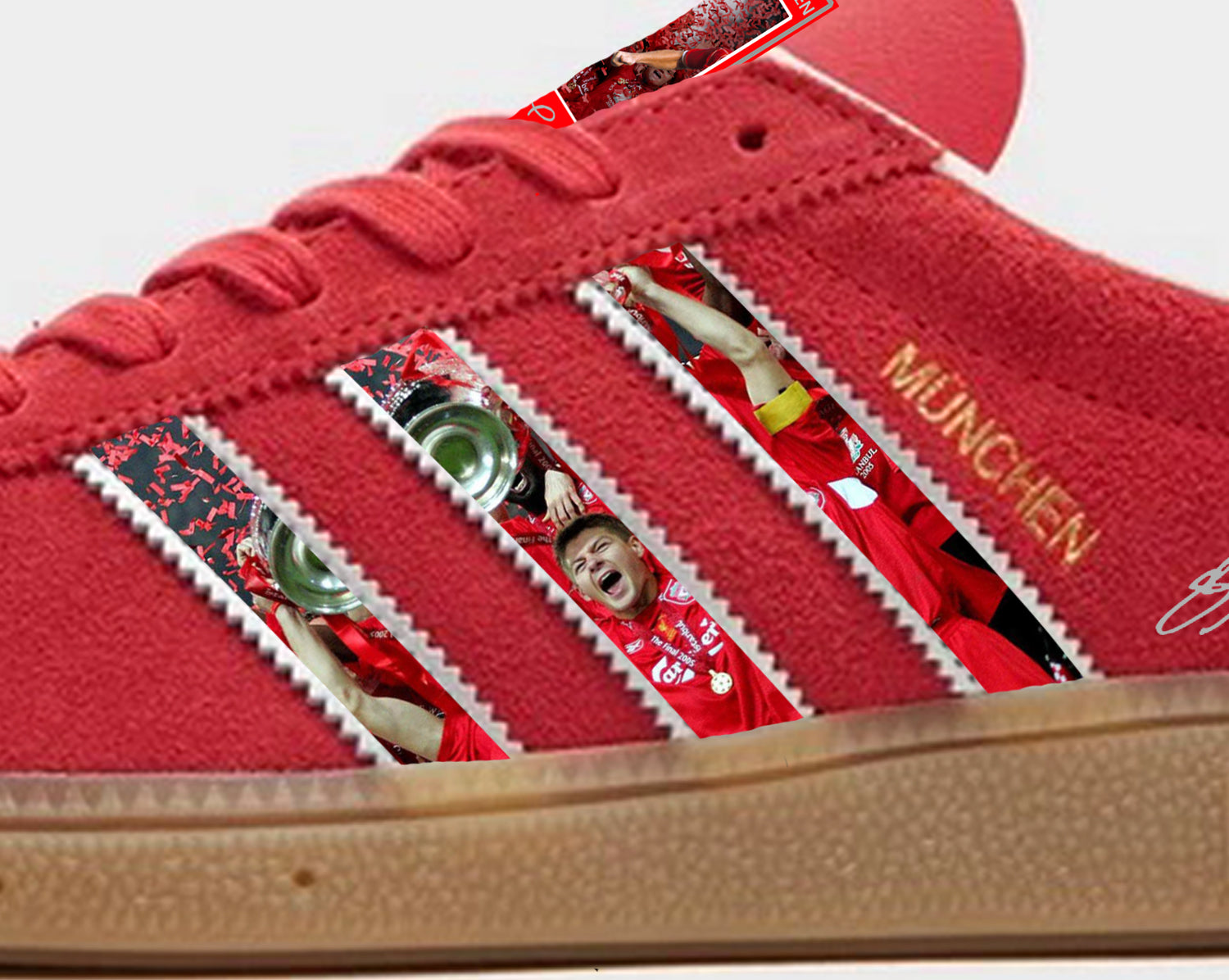 Limited edition Liverpool FC Steven Gerrard Istanbul `05 Adidas Munchen red custom trainers / sneakers