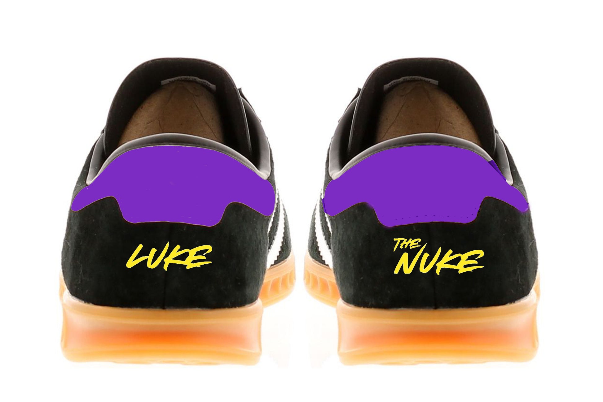 Limited edition Luke Litter inspired Black / Purple / yellow Adidas custom Hamburg trainers / sneakers.