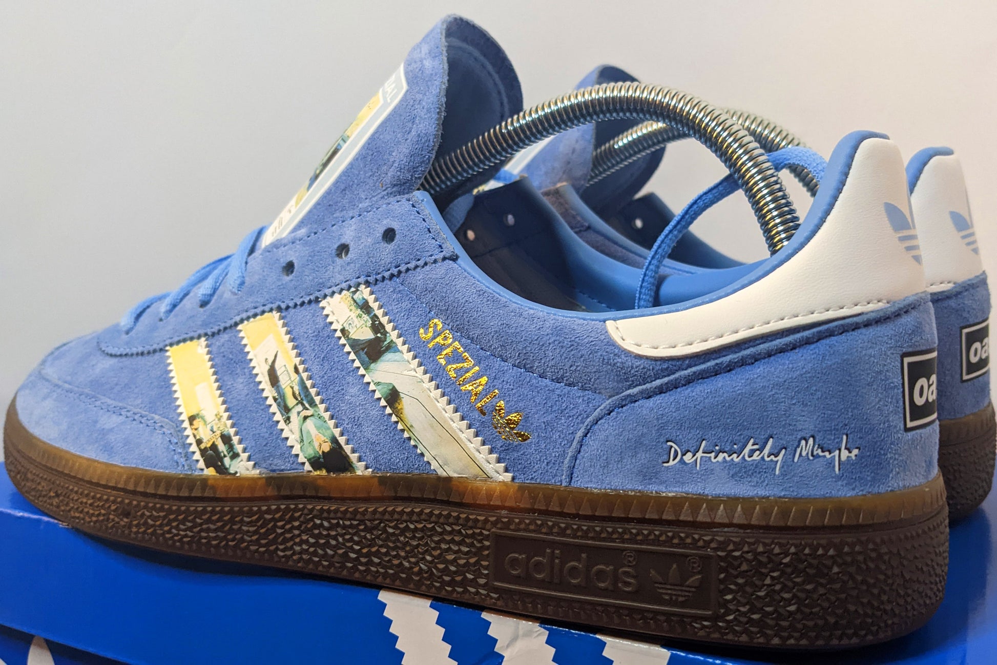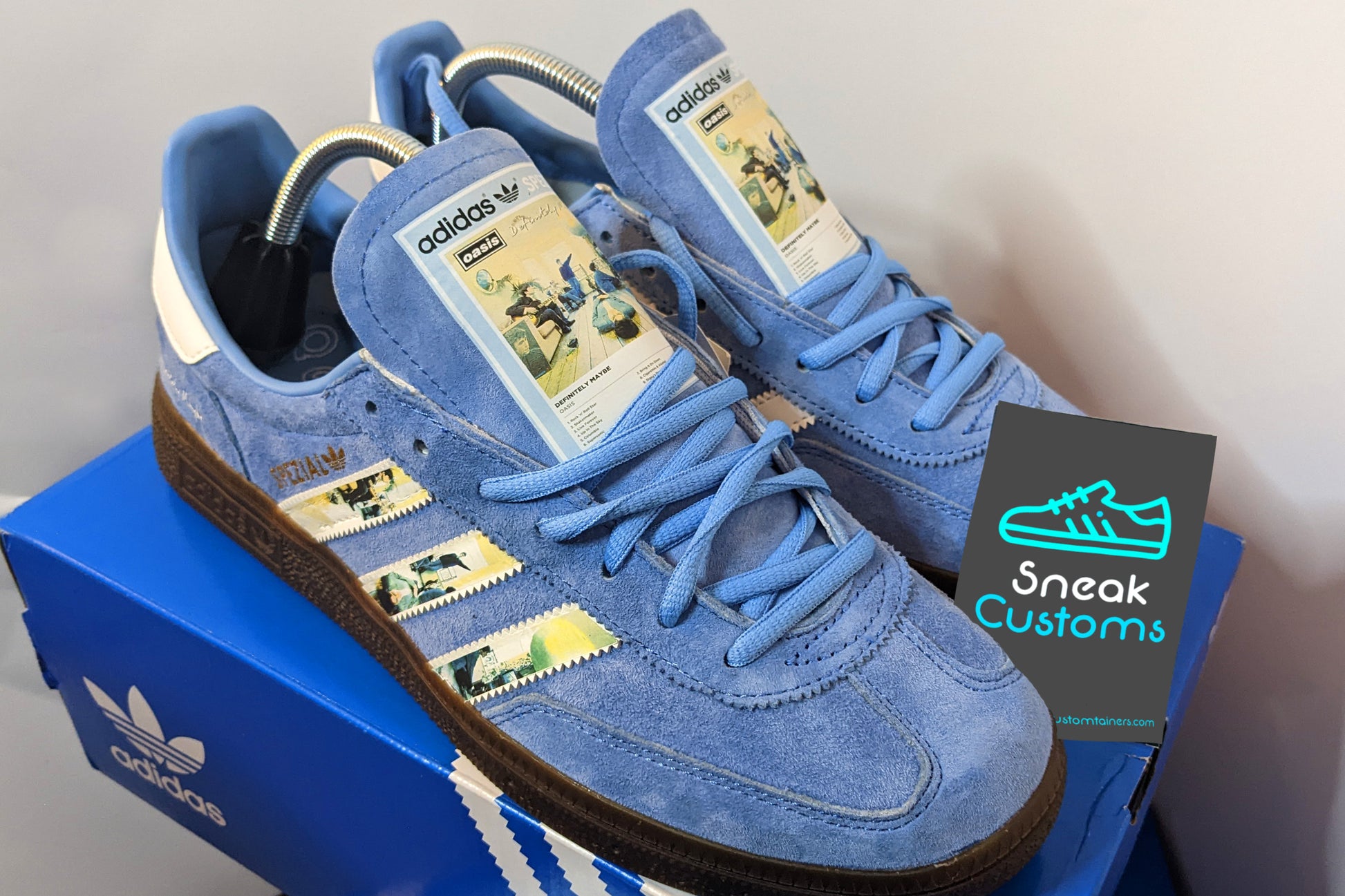 Limited edition Oasis Definitely maybe inspired Light Blue Adidas custom Handball Spezial trainers / sneakers
