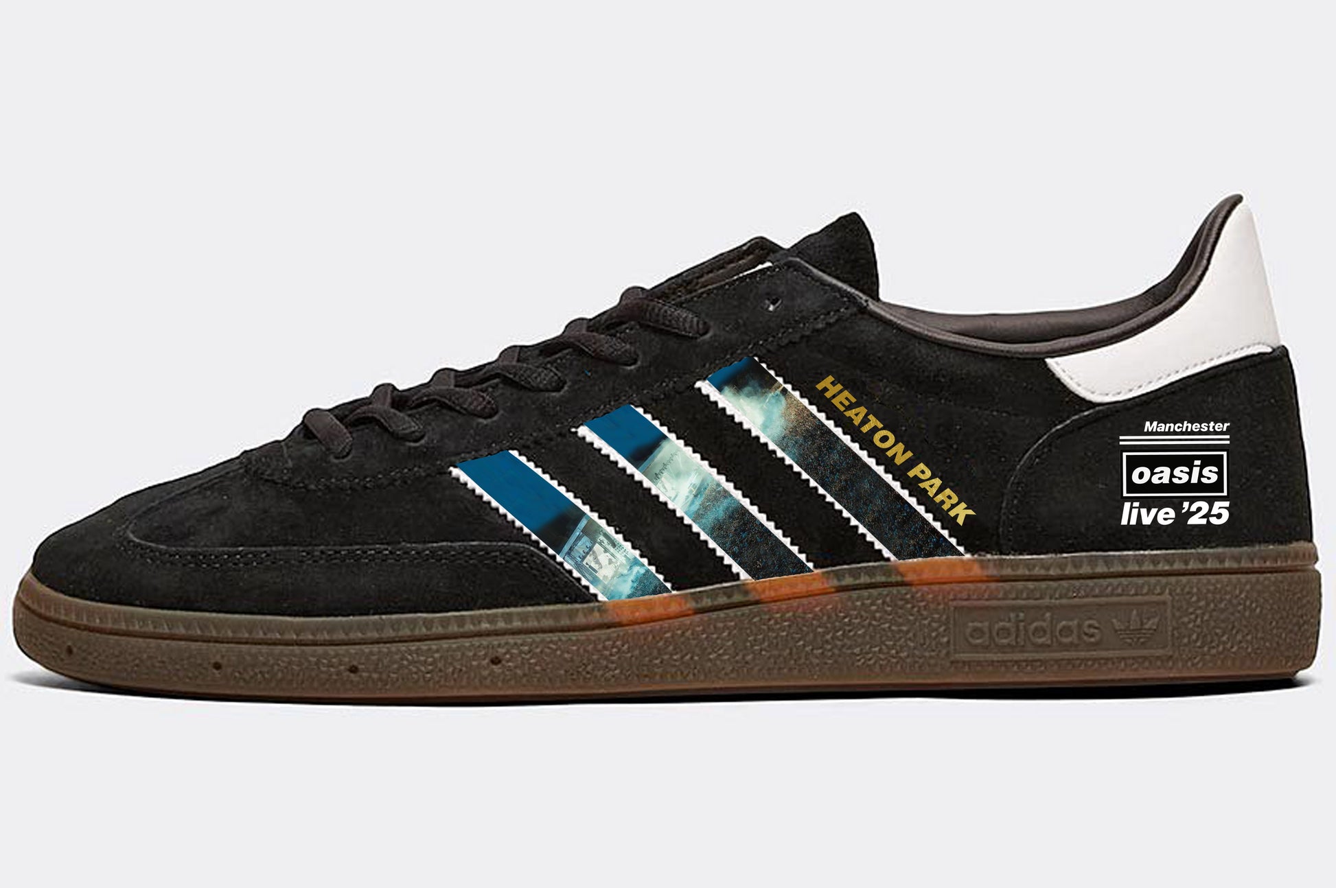 Limited edition Oasis Live 25 Heaton Park Adidas custom Black / white Handball Spezial trainers / sneakers