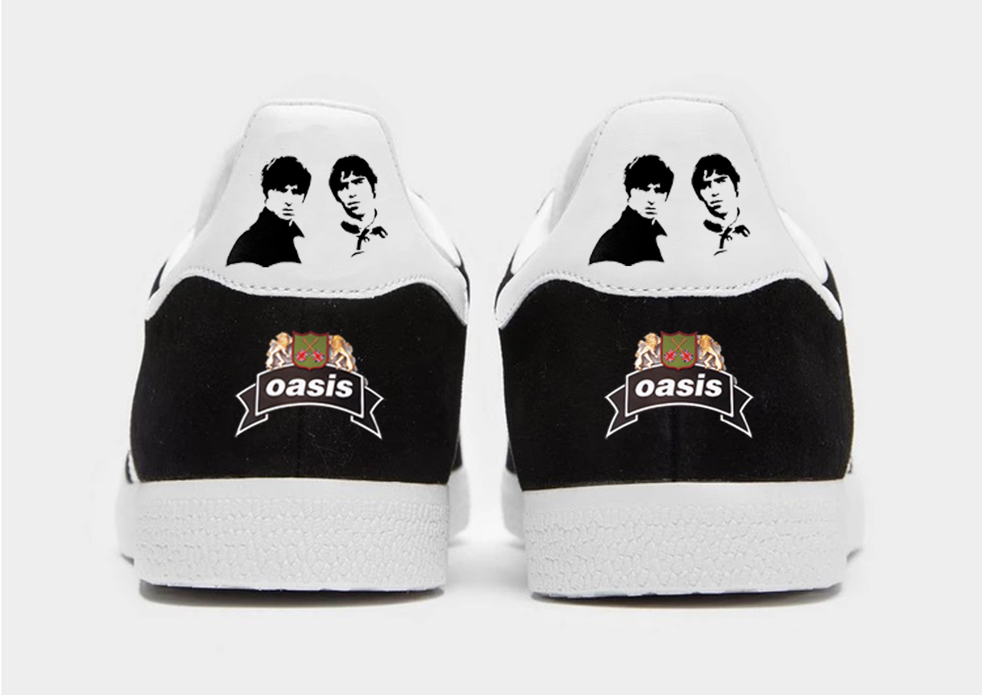 Limited edition Oasis The Masterplan inspired Black Adidas custom Gazelle trainers / sneakers