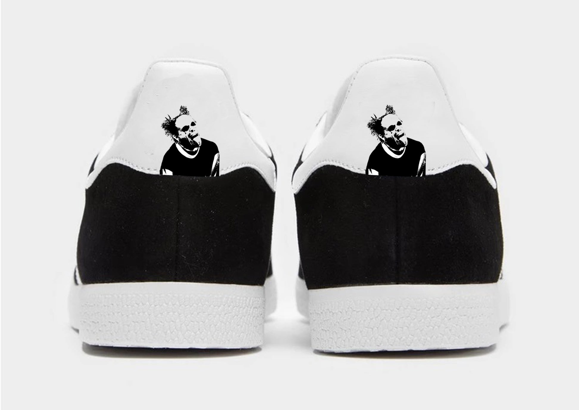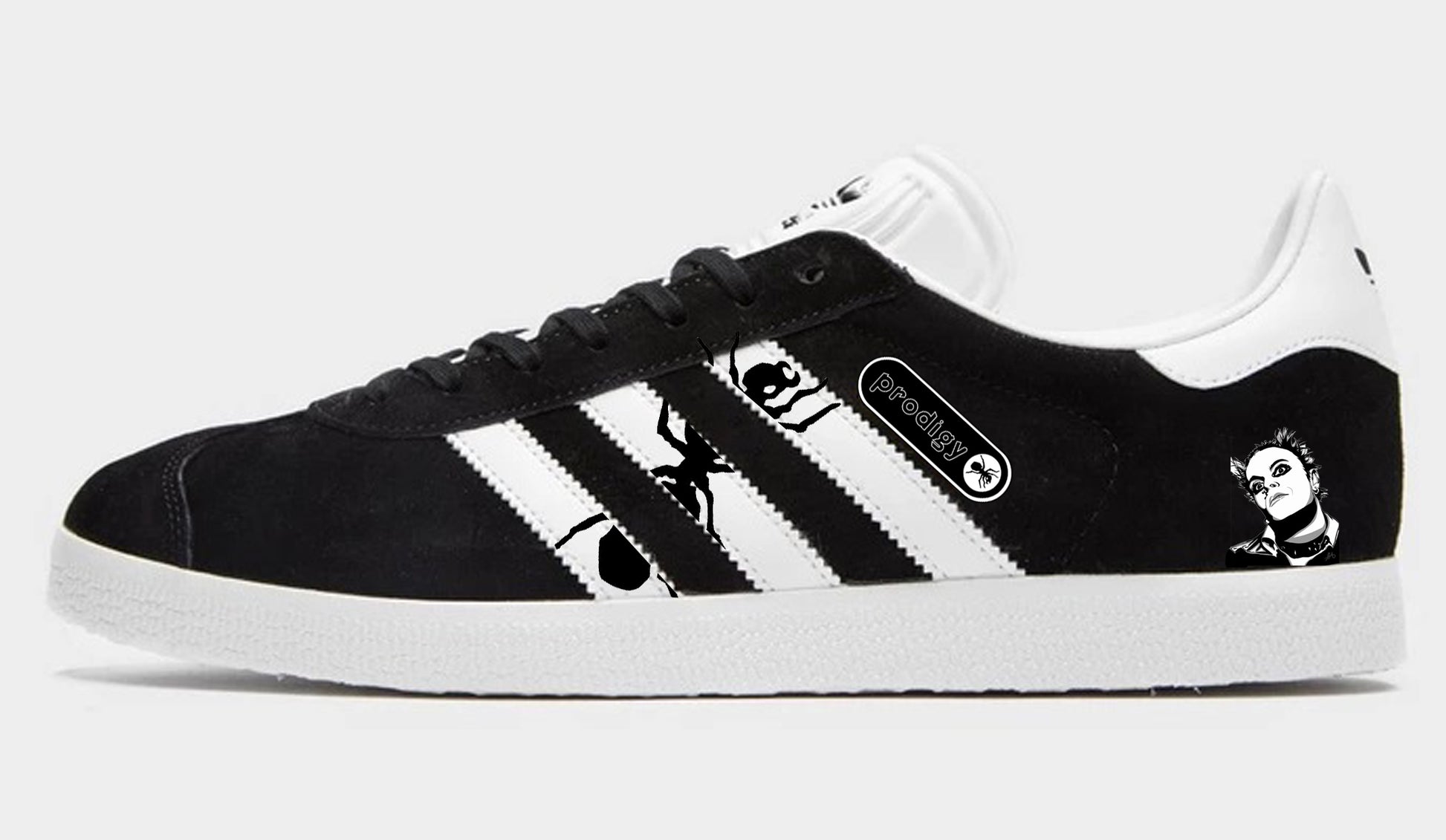 Limited edition The Prodigy / Keith Flint inspired Black Adidas custom Gazelle trainers / sneakers