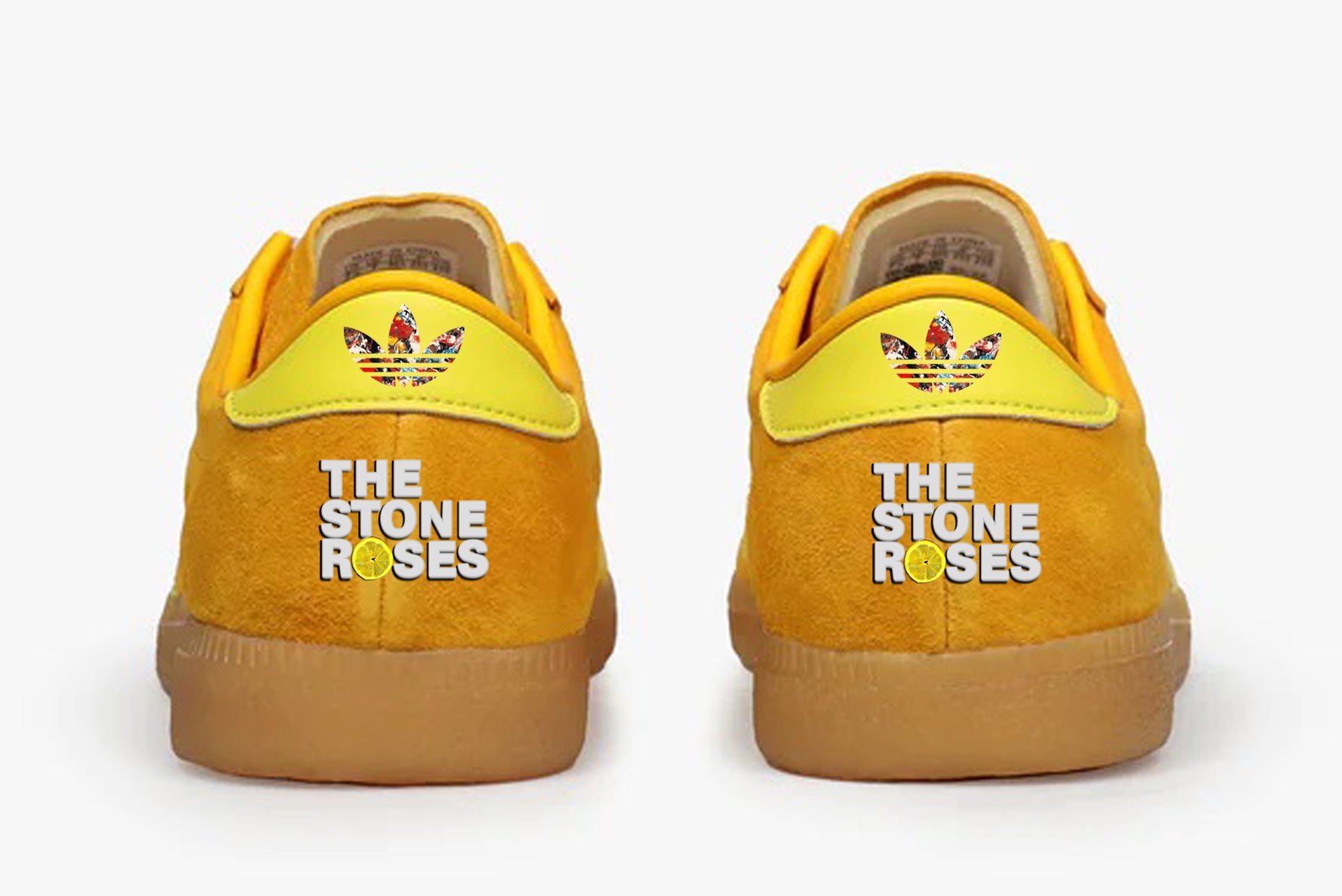 Featuring the album artwork from their seminal debut album album The Stone Roses on the outside stripes and tongues of both trainers.