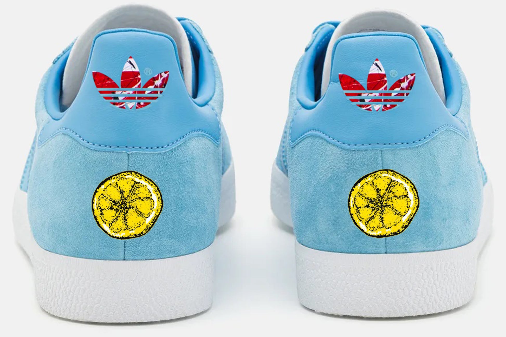 Limited edition The Stone Roses Waterfall Aqua blue Adidas custom Gazelle trainers / sneakers